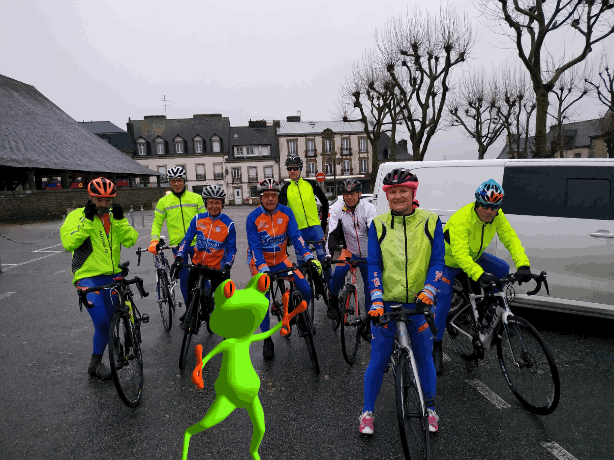 La météo guère optimiste du dimanche nous a fait anticiper la reprise 2026 le samedi. Et nous avons bien fait! nous avons pu profiter d’une belle après-midi ensoleillée. L’ambiance était à la rigolade et aux bavardages, les kilomètres se sont enchaînés sans problème jusqu’à Plouay où Pascal fut contraint à un -« Allo Chantal viens me chercher ». La pratique de la bicyclette est plus efficace avec deux manivelles. Suite au « bâchage technique » de notre compagnon de route nous avons poursuivi notre itinéraire.