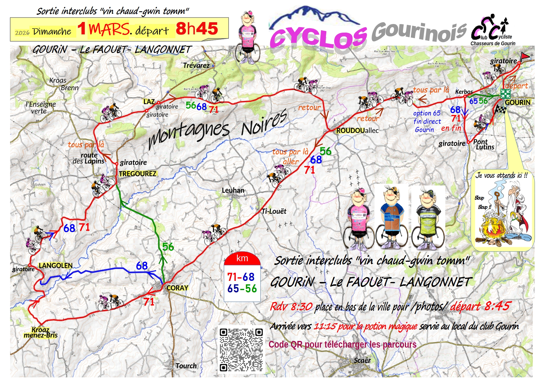 Le 1er mars nous répondrons présents à l’invitation des cyclos Gourinois pour la traditionnelle sortie interclub « Gwin Tom ». Le rendez-vous à 8h30 pour un départ à 8h45 ( parking place Général De Gaulle basse ville)