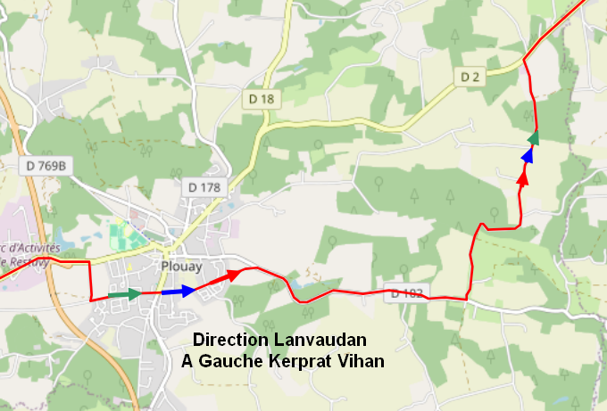 A l’entrée de Rosporden prendre à gauche au passage à niveau. Continuer tout droit pour rejoindre la D4 entre Scaër et Bannalec.