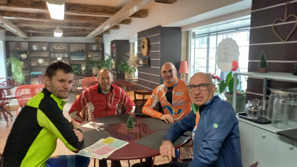 Nous devions mettre un terme aux sorties dominicales 2025 le dimanche 21 décembre. La météo en a décidé autrement, les fortes précipitations ont découragé l’ensemble des cyclos, la sagesse l’a emporté sur l’héroïsme… L’entrainement s’est donc fait sur home-trainer ou pour certains devant un bon café. Les sorties du dimanche reprendront le dimanche 11 janvier.