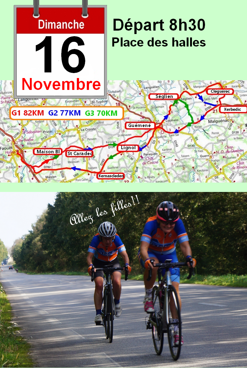 Par obligation et pour notre sécurité, nous emprunterons la piste cyclable entre poteau rouge et l’entrée d’Hennebont. (G1 et G2)