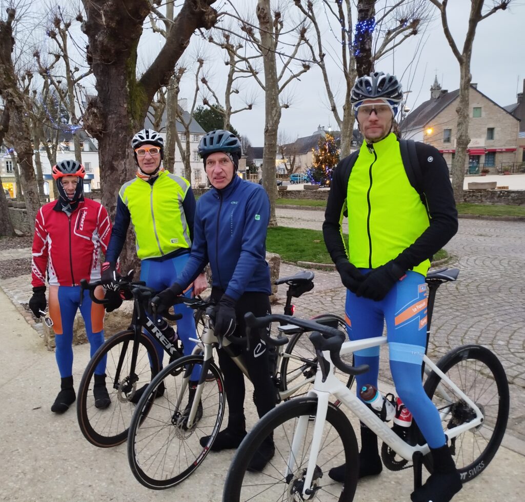 La sortie des pélerins, traditionnellement organisée entre Noël et le jour de l’an s’est déroulée le mardi 30 décembre. Après Ste Anne-La-Palud en 2024, nous avons pris cette année la direction de Ste Anne d’Auray. Il fallait cette année être très pieux ou très… addict à la bicyclette pour se lancer dans cette longue sortie de 130 km. Un froid mordant et un fort vent d’est nous ont accompagnés tout au long de notre itinéraire.