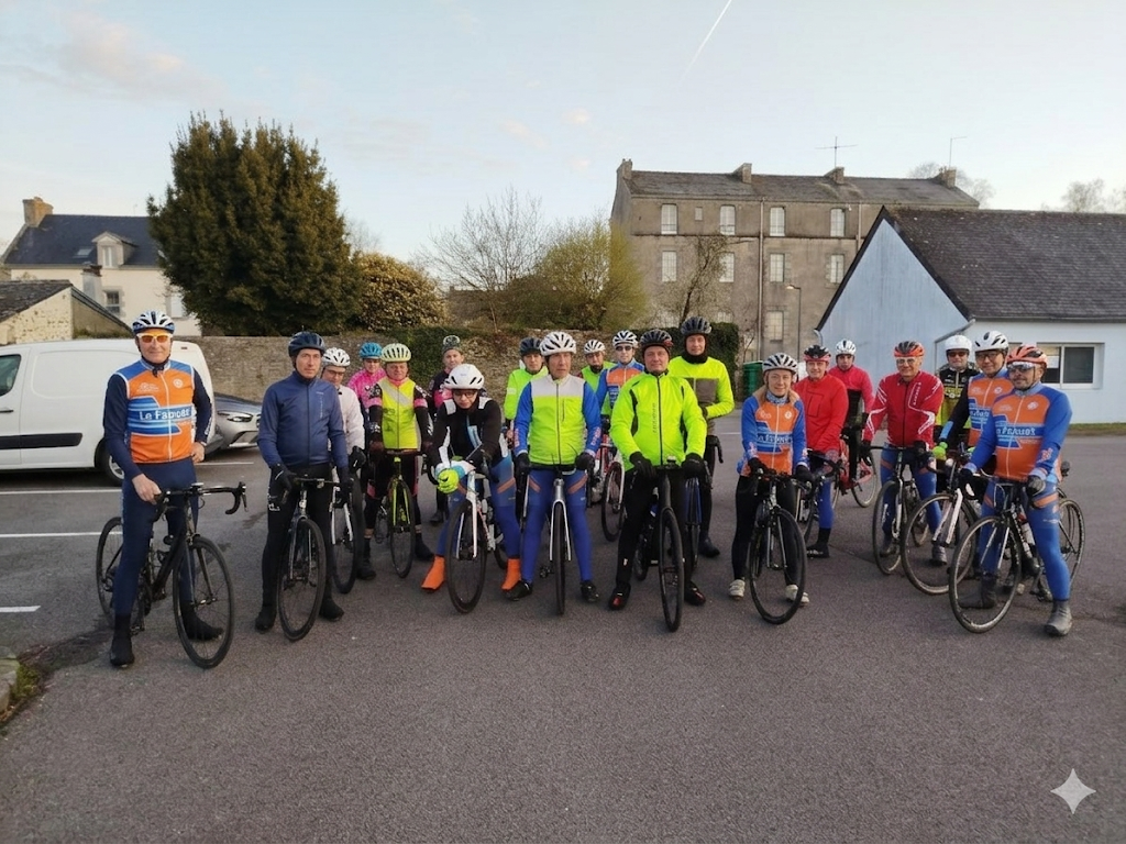 La sortie « Gwin Tom » avec nos amis Gourinois affiche chaque année les mêmes particularités: fraîche, humide avec un fort dénivelé (une météo à vin chaud). L’édition 2026 n’y a pas échappé, la pluie s’est invitée au départ et malgré quelques éclaircies n’a guère épargnée la trentaine de cyclos présents. Les Faouëtais étaient bien représentés avec un nombre croissant au vin chaud…