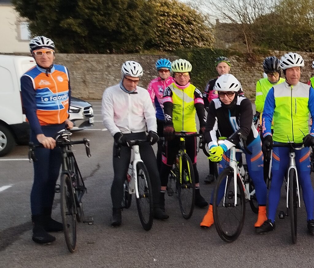-« Nous partîmes à six valeureux coursiers, bravant le froid. La malchance a obligé Didier à l’abandon aux portes de Tourc’h, câble de dérailleur HS. Il a donc fait appel à son véhicule d’assistance. Les cinq autres ont rejoint sans dommage Le Faouët. Belle balade, certes bien fraîche avec une distance de 73.5 Km et un dénivelé de 780m. »